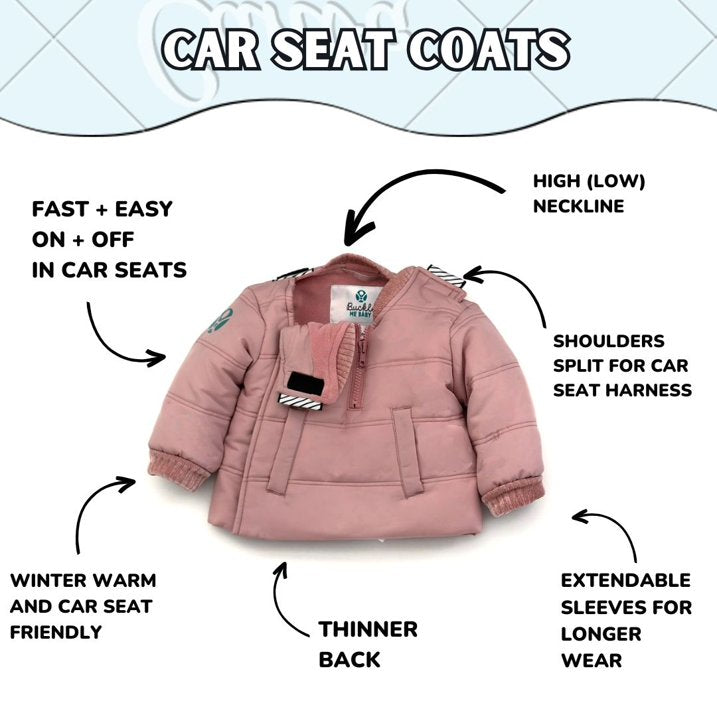 The coats that go on at home and stay on safely (and easily) in car seats! Experts at the NHTSA and American Academy of Pediatrics recommend taking traditional coats off in car seats but experts aren't around for freezing cold days and EPIC parking lot meltdowns! Parents love how quick and easily they can get through their day worry free with our adorable car seat friendly coats!