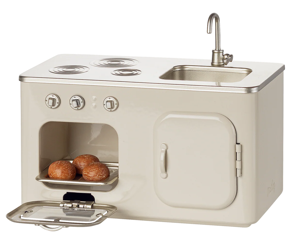 Our beautiful Maileg miniature Kitchen is a must-have. The kitchen comes with 3 freshly baked buns in the oven. Secure many hours of play with this wonderful product.